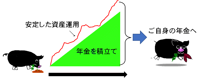 現役世代が負担した保険料を,そのまま受給世代への年金に充てる方式である「賦課方式」とは異なり,積立方式・確定拠出型である農業者年金は,自分自身の財布に保険料を蓄えて運用するような制度ですので,人口変動に影響を受けにくいという特徴があります。