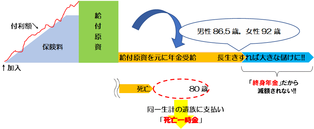 「は」 80歳前に死亡した場合は死亡一時金がある,終身年金!